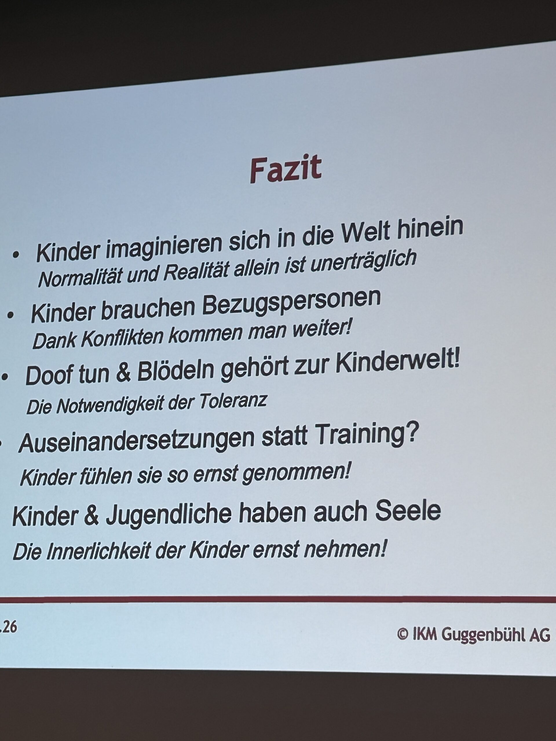 Erziehung ist Schwerstarbeit, stellte Allan Guggenbühl und mit ihm wohl auch die Eltern und Lehrerinnen und Lehrer im Raum fest. Kinder, so erklärte Allan Guggenbühl weiter, brauchen Erwachsene, die Werte vertreten und sich gleichzeitig bewusst sind, dass die Kinder ihren eigenen Weg suchen und möglicherweise nicht bereit sind, ihre Werte zu übernehmen.