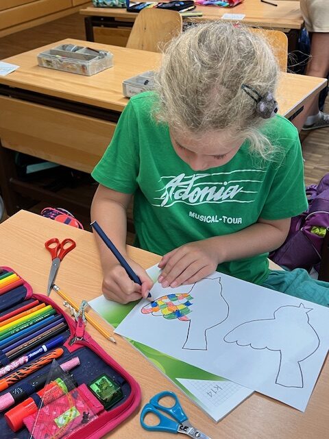 Schon bald werden ganz viele „Gedankenvögel“ unseren Schuleingang schmücken. Wir freuen uns sehr darauf, mit all diesen Vögeln in das neue Schuljahr zu starten.