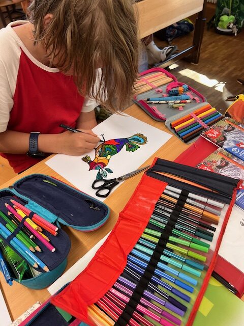 Schon bald werden ganz viele „Gedankenvögel“ unseren Schuleingang schmücken. Wir freuen uns sehr darauf, mit all diesen Vögeln in das neue Schuljahr zu starten.